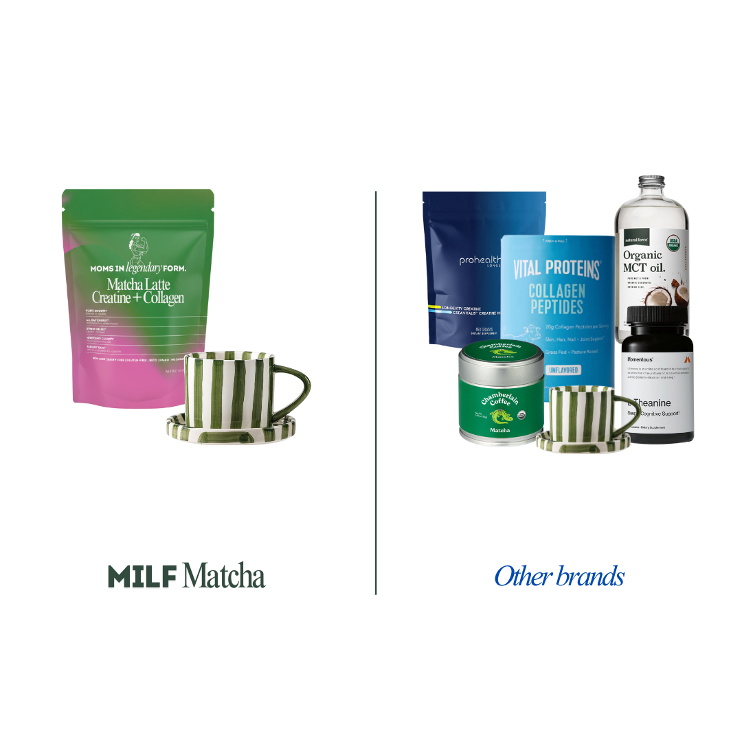MILF Matcha is the only thing in your cabinet you'll actually finish. Why? Because it tastes like a latte, not like drinking dirt. And because it actually works.